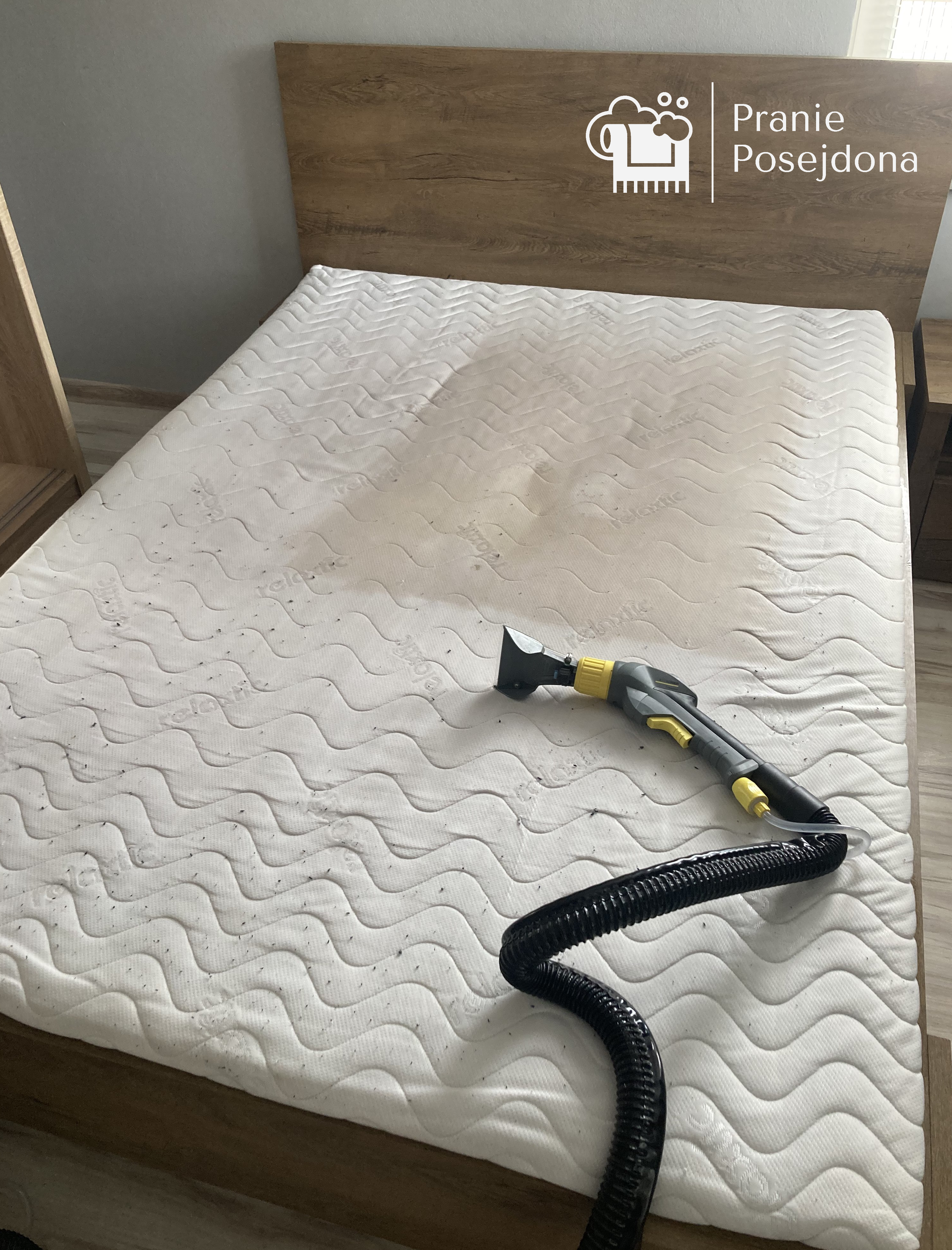 Działanie mechaniczne - Podczas pracy używamy odkurzaczy marki Santoemma lub Kärcher. Odkurzacz piorący posiada funkcje prania ekstrakcyjnego, w dużym skrócie, polega ona na tym, że w momencie wydobywania się wody pod ciśnieniem jest ona praktycznie w tej samej chwili zbierana ssawką ssącą, z tym że już jako brudna woda zebrana z czyszczonego materiału.